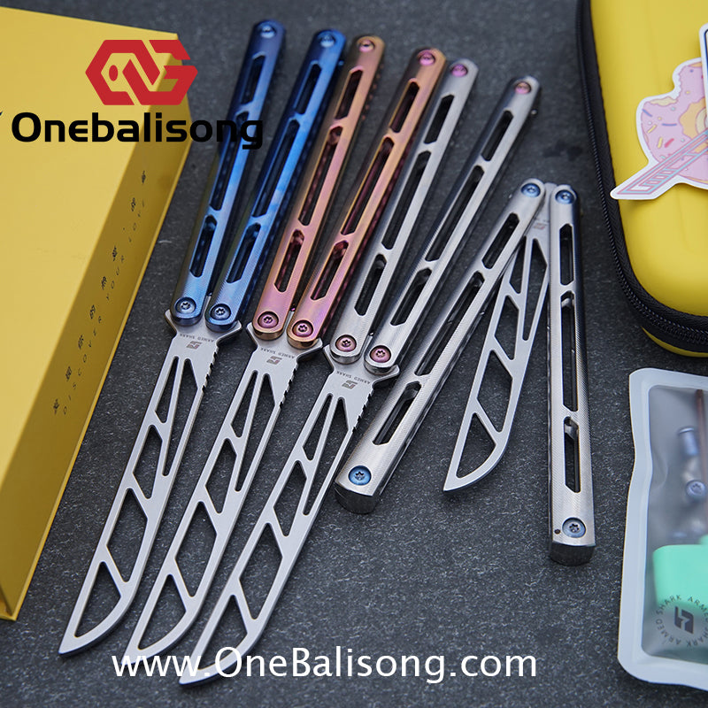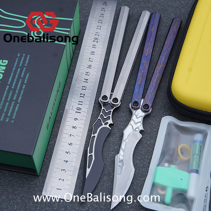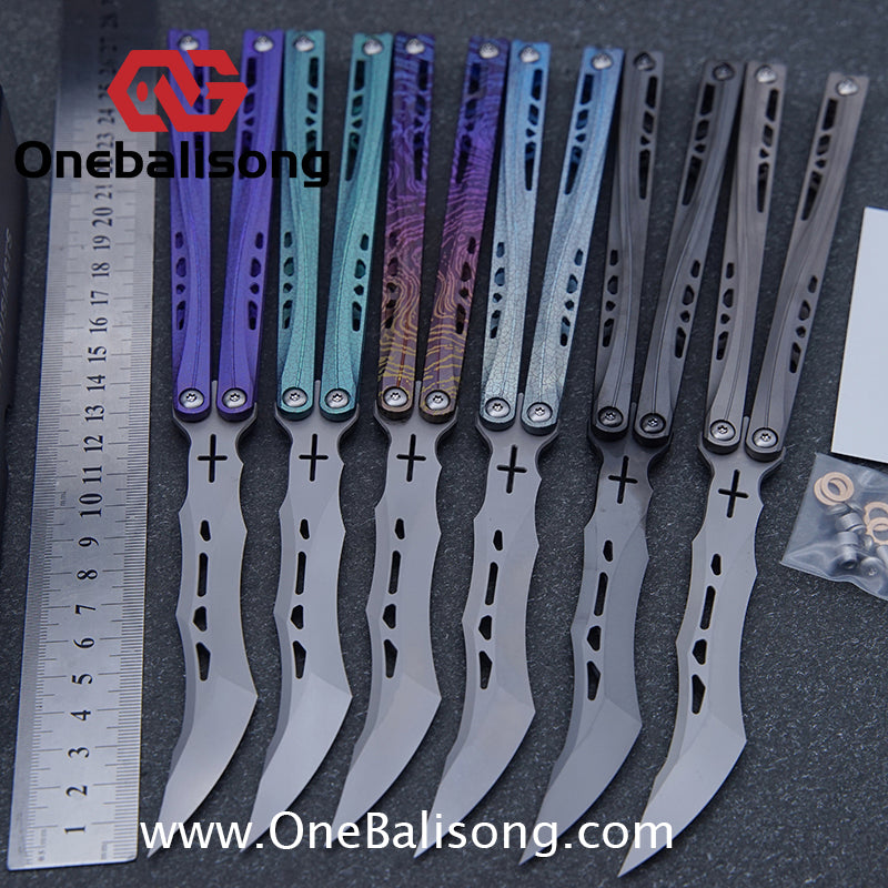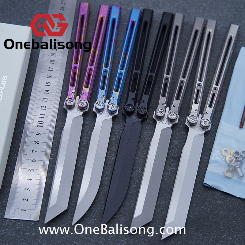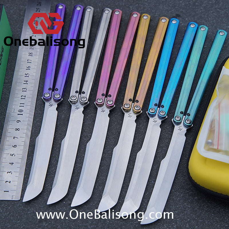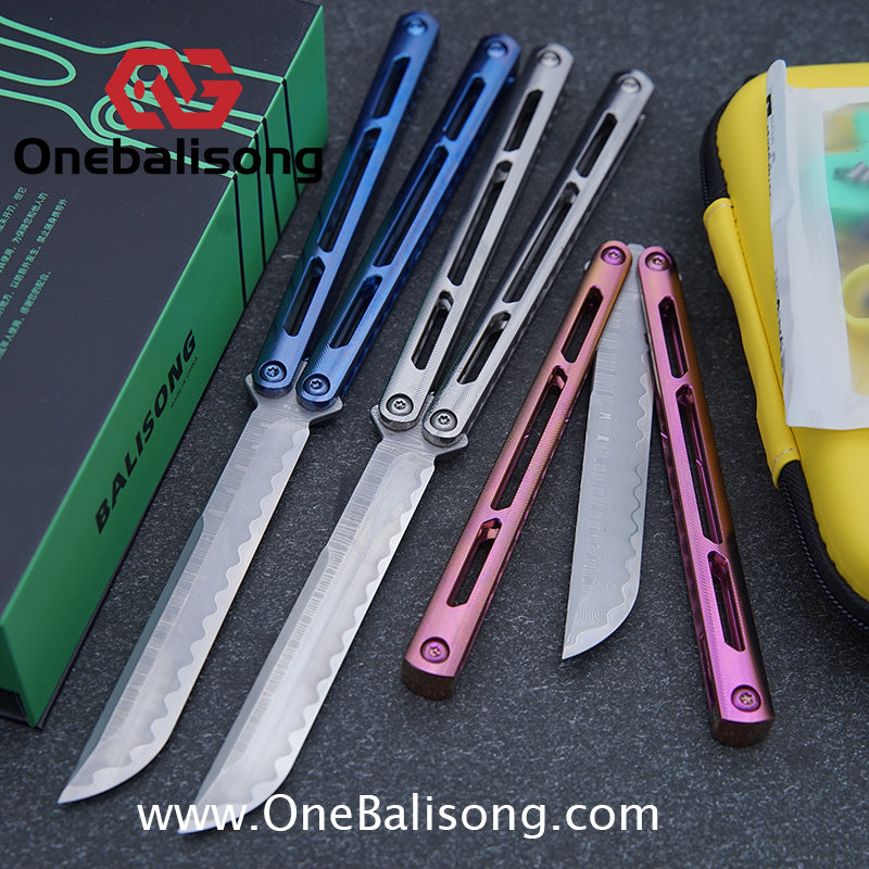 Button labelBlue River Tsunami Clone Balisong Tsunami V4 Titanium alloy handle Clone VG10 live blade Bushing