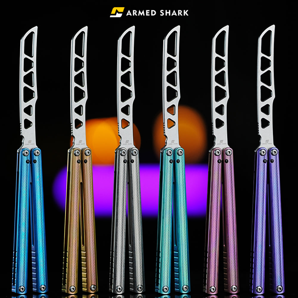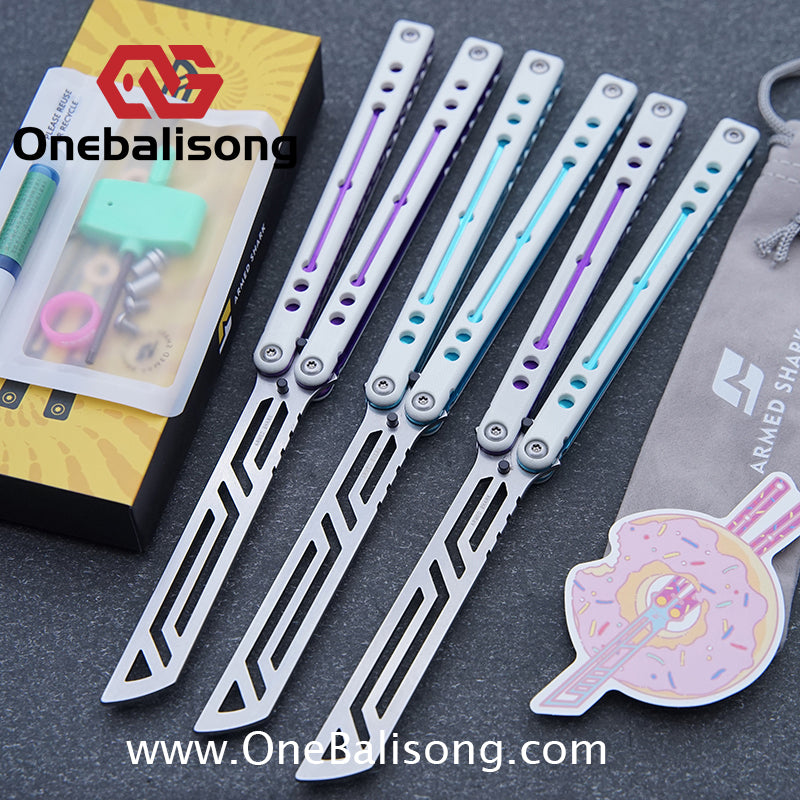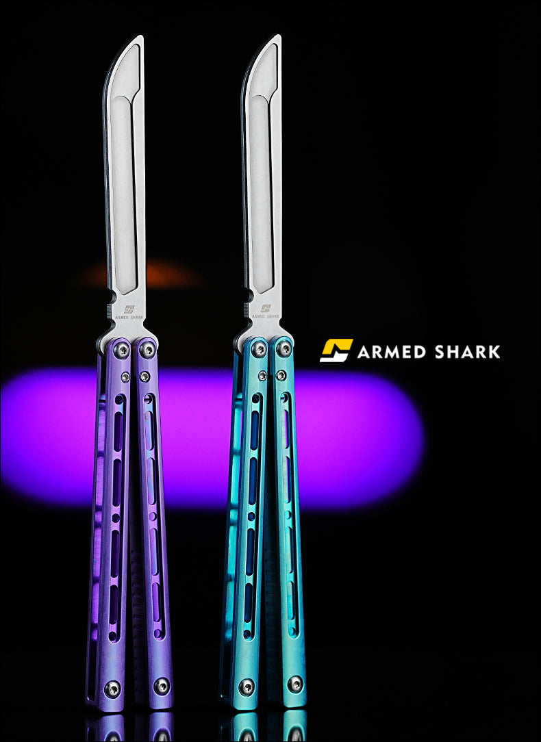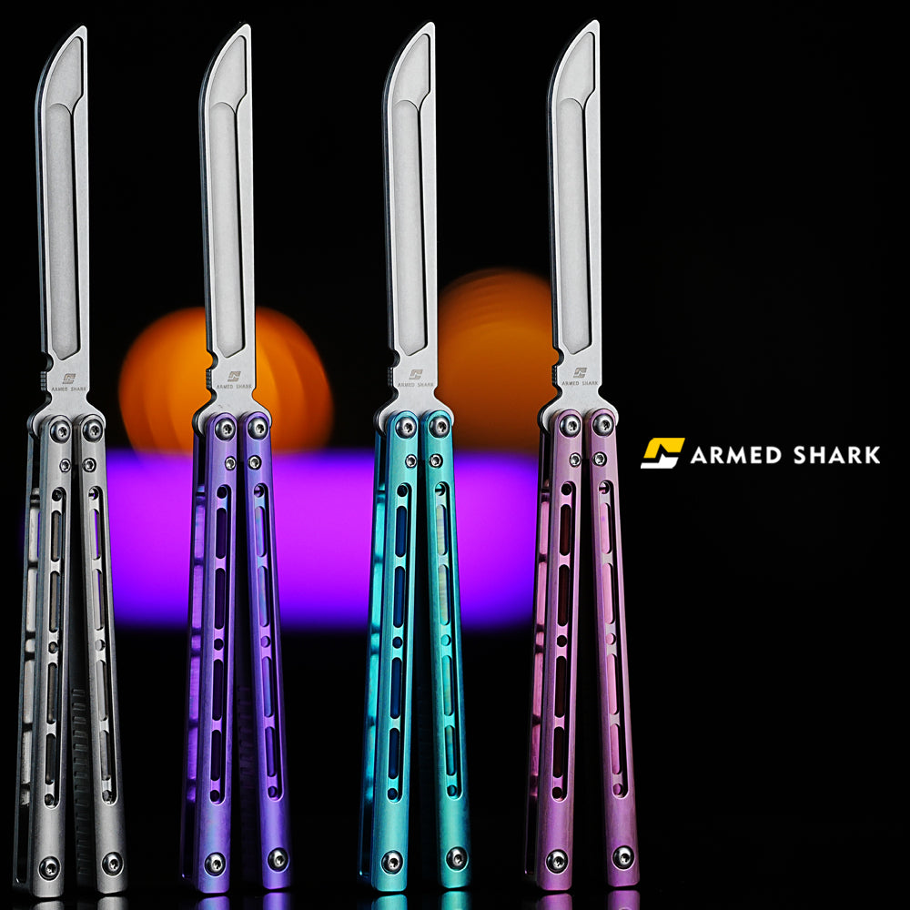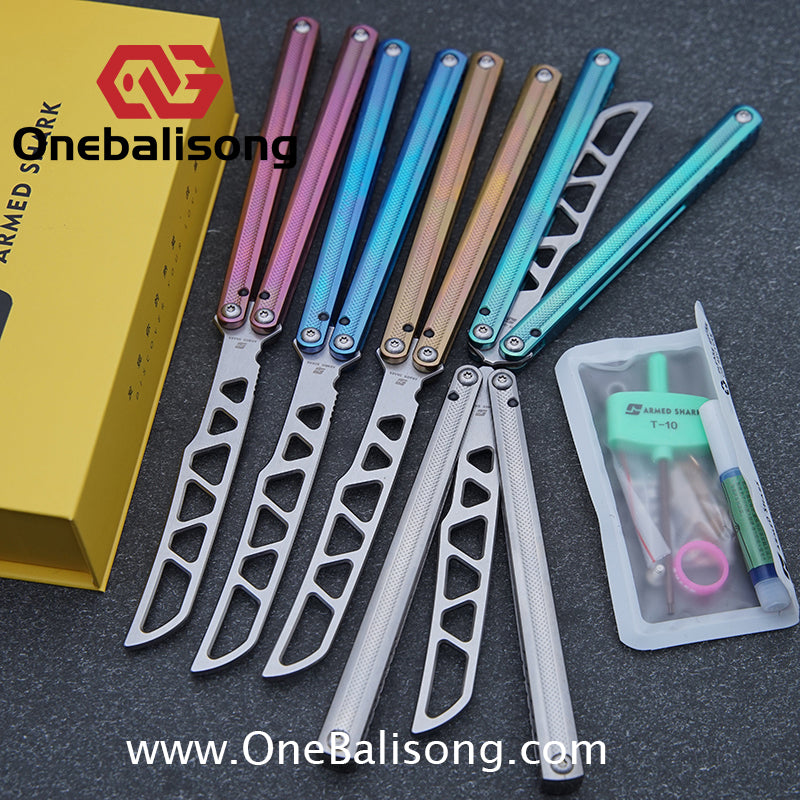 Button labelBlue River Tsunami Clone Balisong Tsunami V4 Titanium alloy handle Clone VG10 live blade Bushing